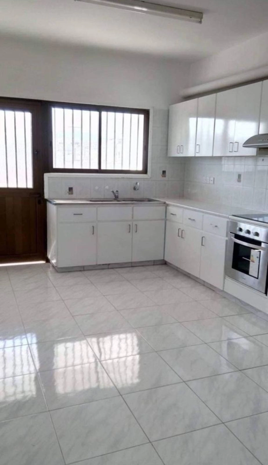 One 3-bedroom apartment 108m2 on the first floor with two bathrooms and spacious living room and kitchen, parking, balcony, entire first floor (front and back views)