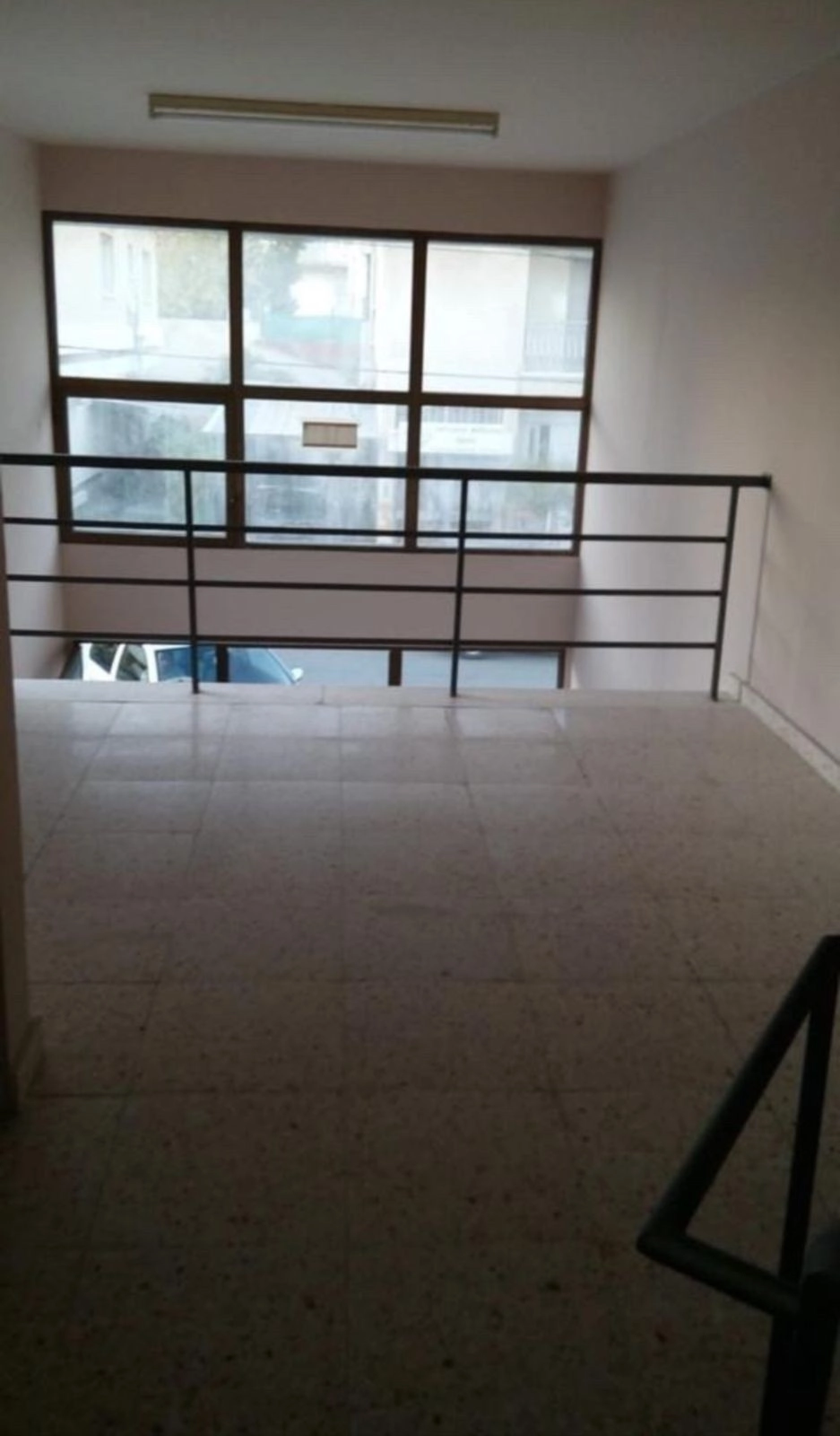 2 shops of 25 m2 on the ground floor, one bathroom, mezzanine floor, front parking corner of the building