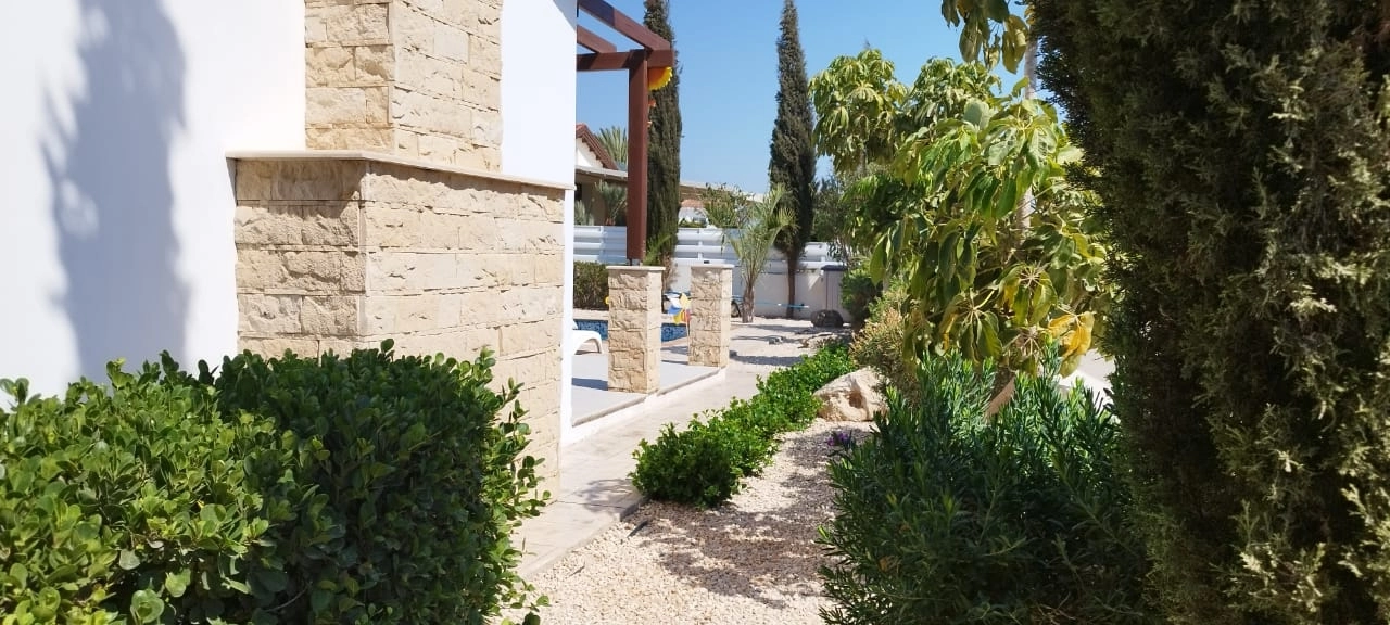 Reference ID: #SA35310Price details: €360,000This villa features two bedrooms, one of which is a generously proportioned ensuite with its own bathroom, ensuring privacy and convenience. An additional bathroom caters to the needs of residents and guests.Step outside to an inviting outdoor patio that connects seamlessly with the swimming pool, providing an idyllic setting for leisurely afternoons and entertaining friends and family. Whether you choose to take a refreshing dip in the pool or simply bask in the Mediterranean sunshine, the outdoor space offers a perfect retreat.Convenience is further enhanced by the presence of a dedicated parking space, ensuring secure and hassle-free parking for residents.Nestled in Ayia Thekla, this villa presents an opportunity to embrace the relaxed coastal lifestyle of Cyprus. With its appealing design, private pool, and thoughtful amenities, this property is perfect for those seeking a comfortable retreat by the sea.Covered area: 81 sq.m.Plot size: 466 sq.m.Uncovered veranda: 29 sq.m.