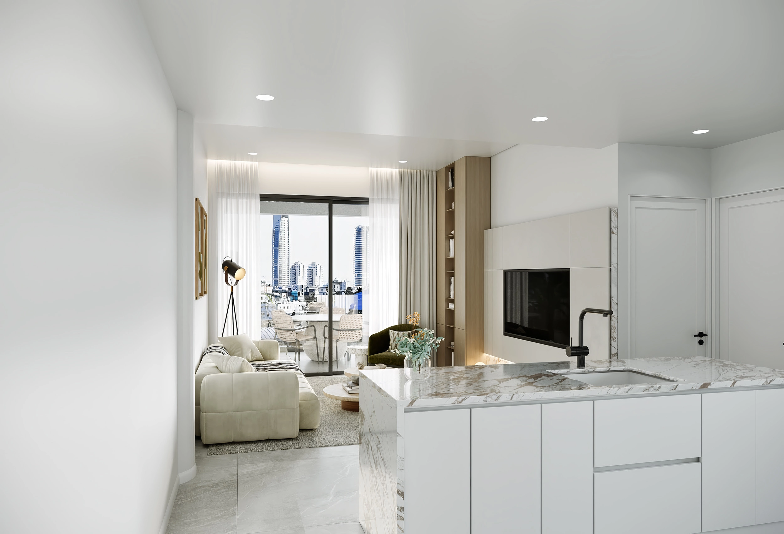 Kitchens, toilets, and corridors ceilings will be decorated with gypsum boards with built-in spotlights. Bedroom lights or chandeliers are not included.