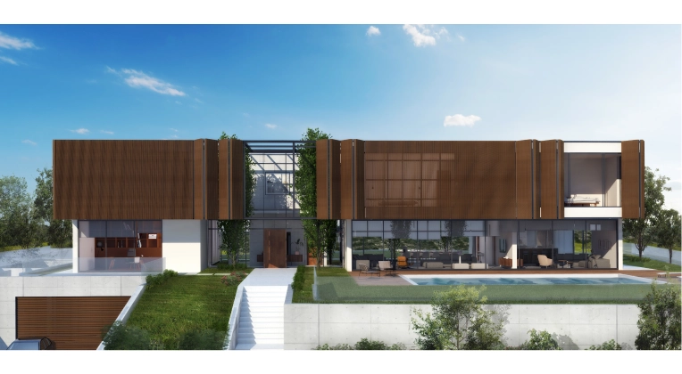 Villa has a big 97 sq.m. master bedroom on the top with big bathroom and big panoramic terrace. On the second floor there is the kitchen with the big salon, guests toilet, lift all over the floors. On the first floor there are 4 bedrooms with the own bathrooms (one of the bathrooms has the exit to the garden with the shower). On the ground floor big rest room, big laundry , sauna and one room with the own bathroom.