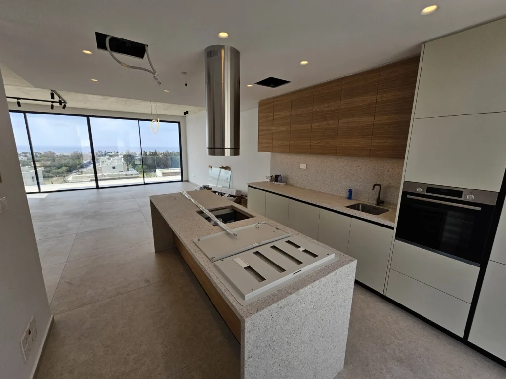 For sale a new two-storey townhouse with 3 bedrooms and 3 bathrooms in a stylish complex of 14 modern villas in lower Chloraka. Fully furnished and ready to move in. The townhouse is equipped with all modern amenities, including an overflow pool, barbecue area and parking for 2 cars. The house offers a beautiful view of the sea.