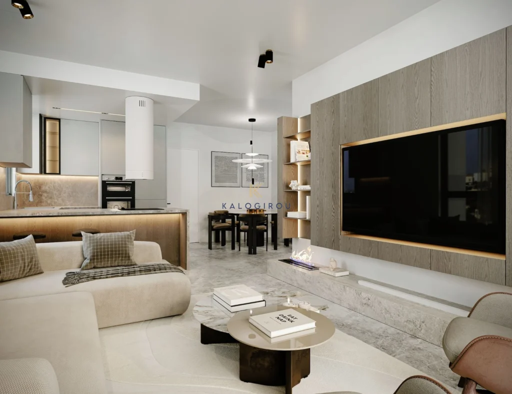 Apartment for sale in Agios Athanasios area, Limassol. The property is an apartment situated on the first floor. It consists of an open plan kitchen, dining area, living room, a main bathroom, 2 bedrooms, an en suite shower and covered veranda. The residents will have access to a storage room and covered parking on the ground floor.