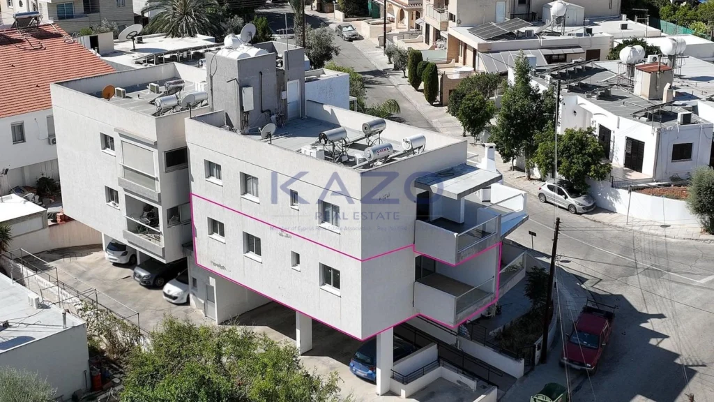 This two-bedroom apartment is situated in prime location of Chryseleousa, Strovolos, Nicosia. The location and the condition of the apartment makes it ideally opportunity for own use or investment. The apartment with door No.101 occupies the northeastern part of the 1st floor and consists of an open plan area with living room, a kitchen, 2 bedrooms, a bathroom and a covered veranda. Furthermore, it has an exclusive right of use of a covered parking space no.9 on the ground floor and a storage room No.2 in the basement. The asset is located approximately. 310m northwest of the Lyceum of Archangelos, approximately. 800m south of Makareio Stadium, approximately. 450 northeast of Archangelos Juction, approximately. 1.2km southwest of Apollonion Private Hospital, approximately. 1.5km northwest of Metro supermarket and approximately. 850m southwest of Arch. Makarios C’ Technical School. The property falls within Zone Κα6, with a building coefficient of 90%, coverage of 50%, and permission for 2 floors (10m) of construction. There is a separate title deed for this property.