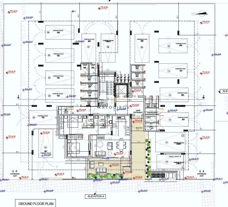 The project is situated in a cul de sac, adjacent to a green area. The building has two floors and comprised of 1,2, 3 bedroom apartments. Top floor apartments enjoy private roof gardens. It is worth mentioning that all apartments have provision for a/c, video intercom doorbell, granite kitchen countertops and walk in showers. All apartments have access to a covered parking spot and storage room.