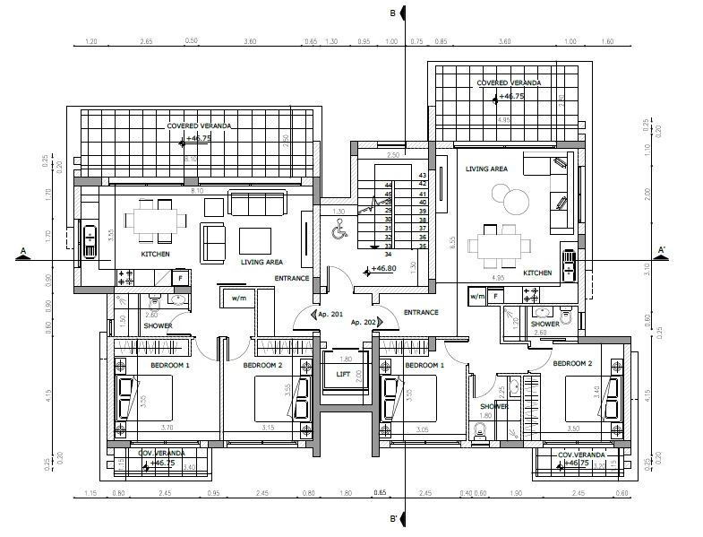 An apartment for sale in the very center of the city. The building consists of 3 floors and 7 apartments with 1, 2 and 3 bedrooms. This apartment includes a spacious terrace, warm electric floor, solar panels, storage room, private Parking. It is located in an area with developed infrastructure, close to all amenities, shops, supermarkets, schools. The apartment offers cozy bedrooms, a spacious kitchen-living room, a veranda.