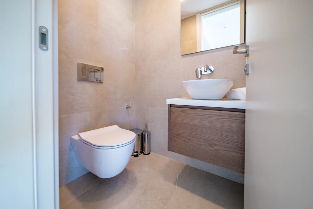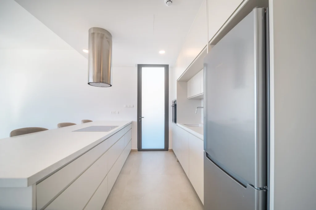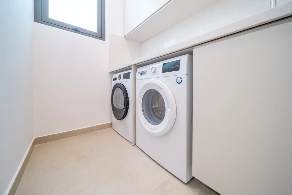 The villa is situated on the ground floor, providing easy access and a seamless connection to the beautifully landscaped outdoor area, which includes a private swimming pool. Enjoy energy-efficient living with an impressive A rating, thanks to the central air conditioning and underfloor heating that create a comfortable environment year-round.