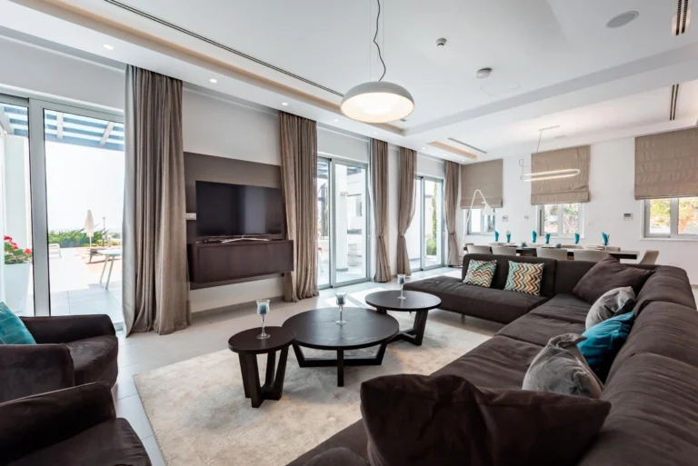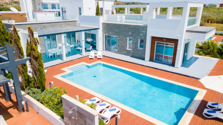 Fantastic, 6 bedroom SEA FRONT villa with pool, Jacuzzi, roof garden, gym and sauna in AYIA NAPA!!! This amazing sea front property is truly unique!! Built to an exceptional standard, this beautiful villa has absolutely everything you could want from a villa in the sun!! It is very obvious that a huge amount of thought has gone into the planning and finishing of this villa.The ground floor consists of a large living, dining area facing the pool area and the sea. The offset kitchen is extremely well equipped with integrated, professional cooking equipment and ample units.Also on the ground floor are three bedrooms and three bathrooms. The basement consists of a second kitchen, a laundry room, a gym, a sauna, three bedrooms and two bathrooms. The whole of the first floor is roof garden, consisting of two separate areas, one of which hosts an hydrotherapy spa, suitable for 6 people to relax and enjoy the stunning views of the med! The second roof garden consists of a seating area, complete with a bar and a tv!!The outside area is just as cleverly designed! From the living area, the patio doors open onto a 12m x 6m overflow, salt water pool! Next to the pool, there is a comfortable dining, sitting and BBQ area, complete with a TV and Bar!To the front of the pool area, there is a second hydrotherapy spa, just 200m away from the beach!Other features of this villa include: Heated pool, underfloor heating, ventilation system, ceiling covered Air conditioning system, on site security, Radio surround system and smart tv in each room and on the roof and communal play ground! There are three beaches within minutes walking distance to this fantastic villa, as well as a beautiful 4km walking path along the coast!A truly amazing property!
