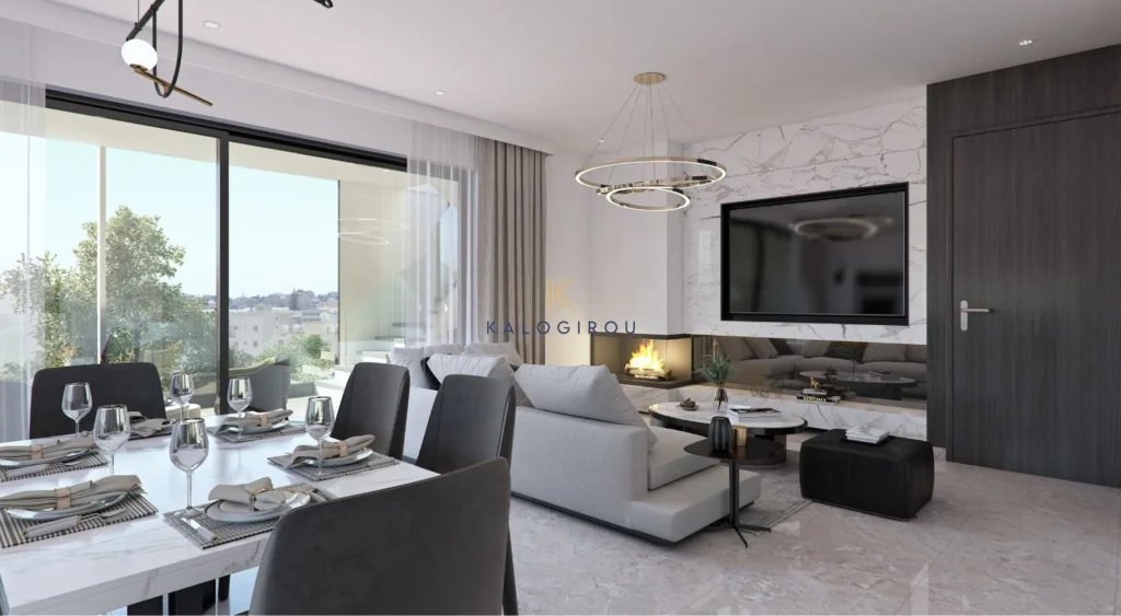 Apartment for sale in Drosia area, Larnaca Town. The apartment has 80 sqm internal covered area and consists of open plan kitchen, living and dining area, two bedrooms, a main bathroom, one en suite shower and wc and covered veranda of 22 sqm. In addition, the property has exclusive right of use to a storage room on the roof top and a covered parking space on the ground floor.