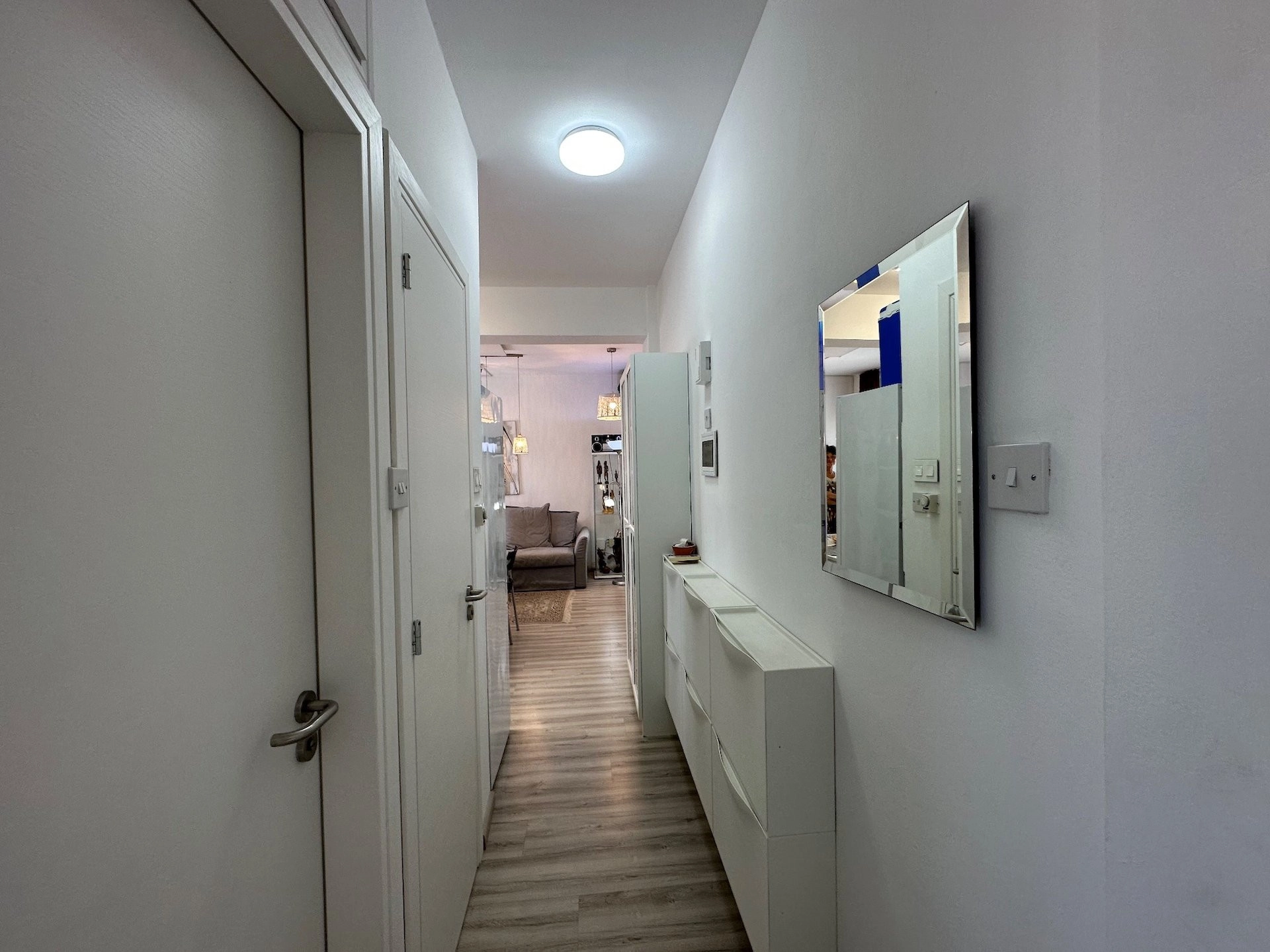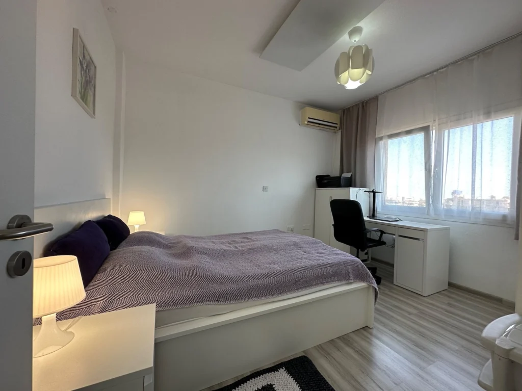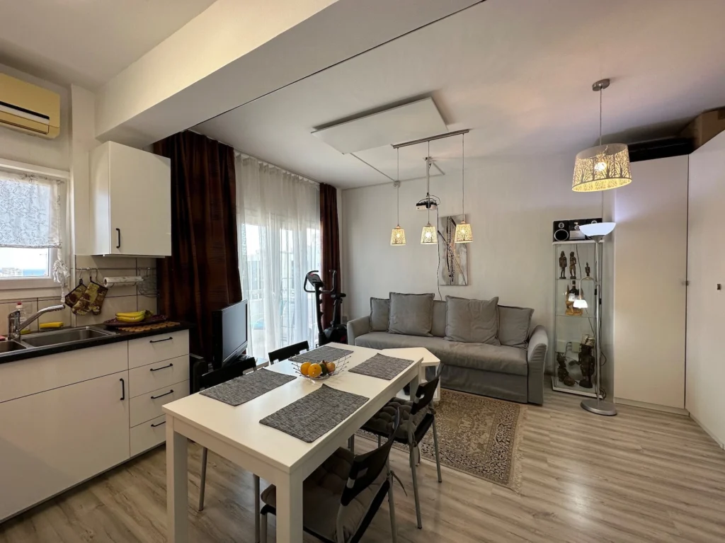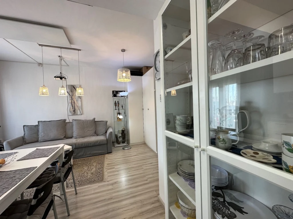 The apartment boasts lovely city and sea views from the balcony, providing a serene backdrop to daily life