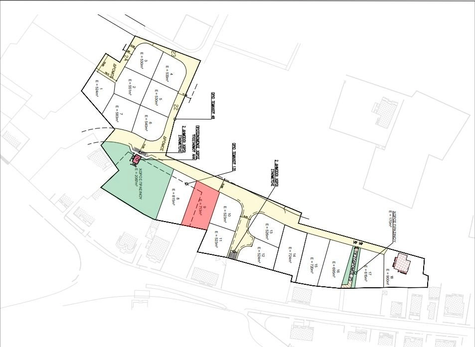 The plot for sale is currently under division. It is located in a quiet residential area of the village of Avgorou only 200m from A’ Public School, and 800m away from village center. It is 1 out of 18 plots under division.