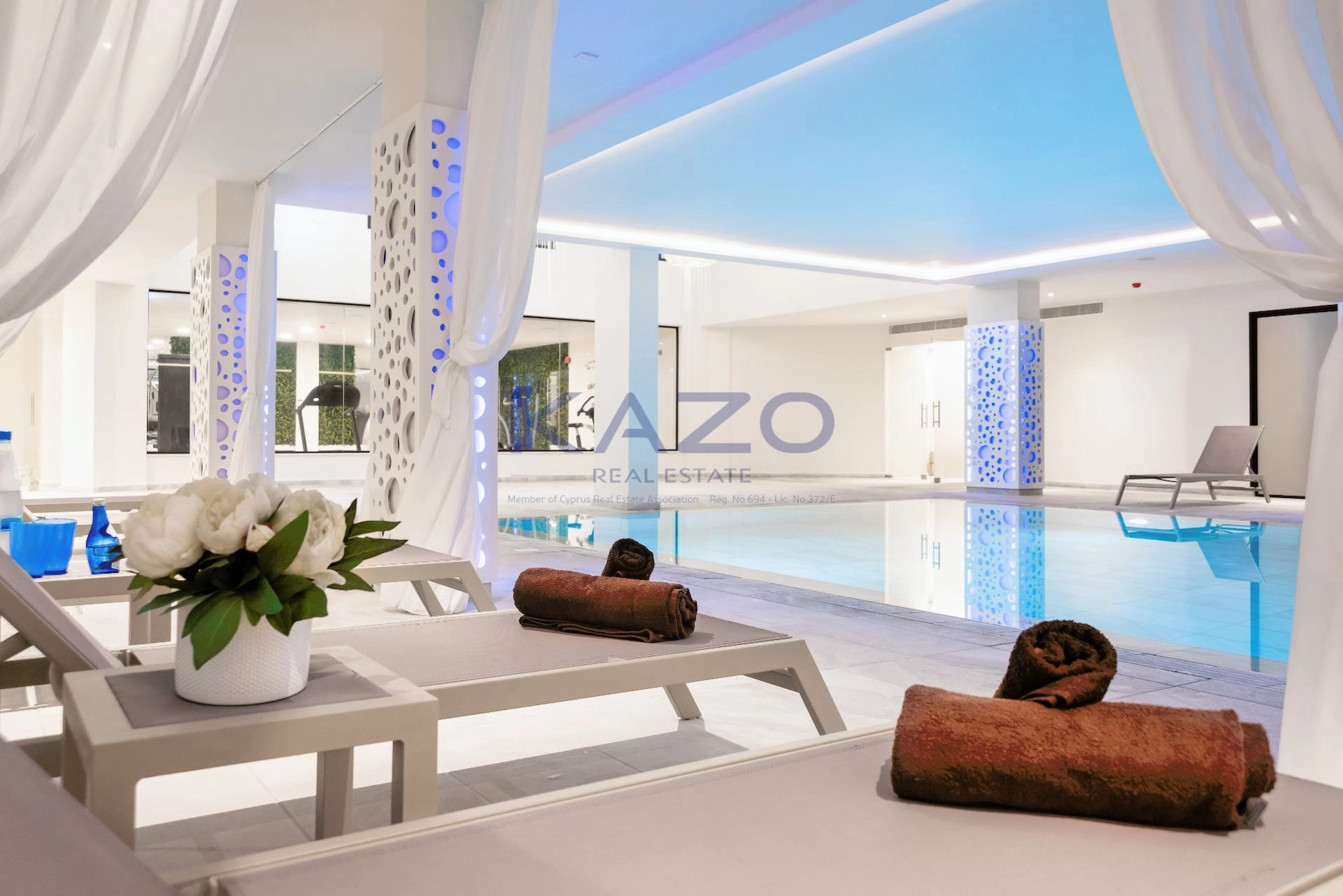 Discover a beautifully crafted, studio apartment for sale in Mouttagiaka tourist area. The property covers 45 sqm internal area and 14 sqm covered veranda. In more detail, it consists of a living room, an open plan kitchen, one bedroom and a shower room. It is situated on the ground floor of a two-story building and coes with one parking and a storage unit. Additionally, the complex provides four outdoor pools, one indoor pool, a common gym, a common spa area and a lobby with a conciere.