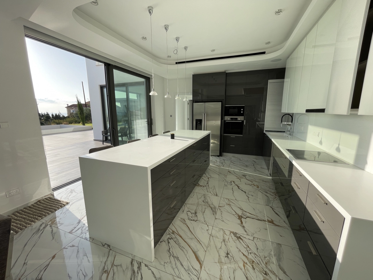 Villa for sale in lower Pegeia, Paphos. Due to its location on the slope, the villa offers charming views of the coral shores of Coral Bay. Philippos Supermarket is only 2.7 km away, and Coral Bay center, where restaurants, bars and all necessary infrastructure are located, is only 3 km away. The villa is fully furnished and equipped with household appliances. Air conditioning is installed, there is heating. Parking is available for the car.