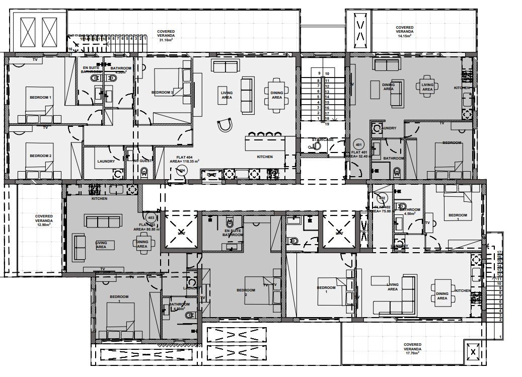 Stylish project located in Engomi, Nicosia. 3 Km from American and Russian embassy, in a quiet residential neighborhood. Close to local shops, cafes, and restaurants.
