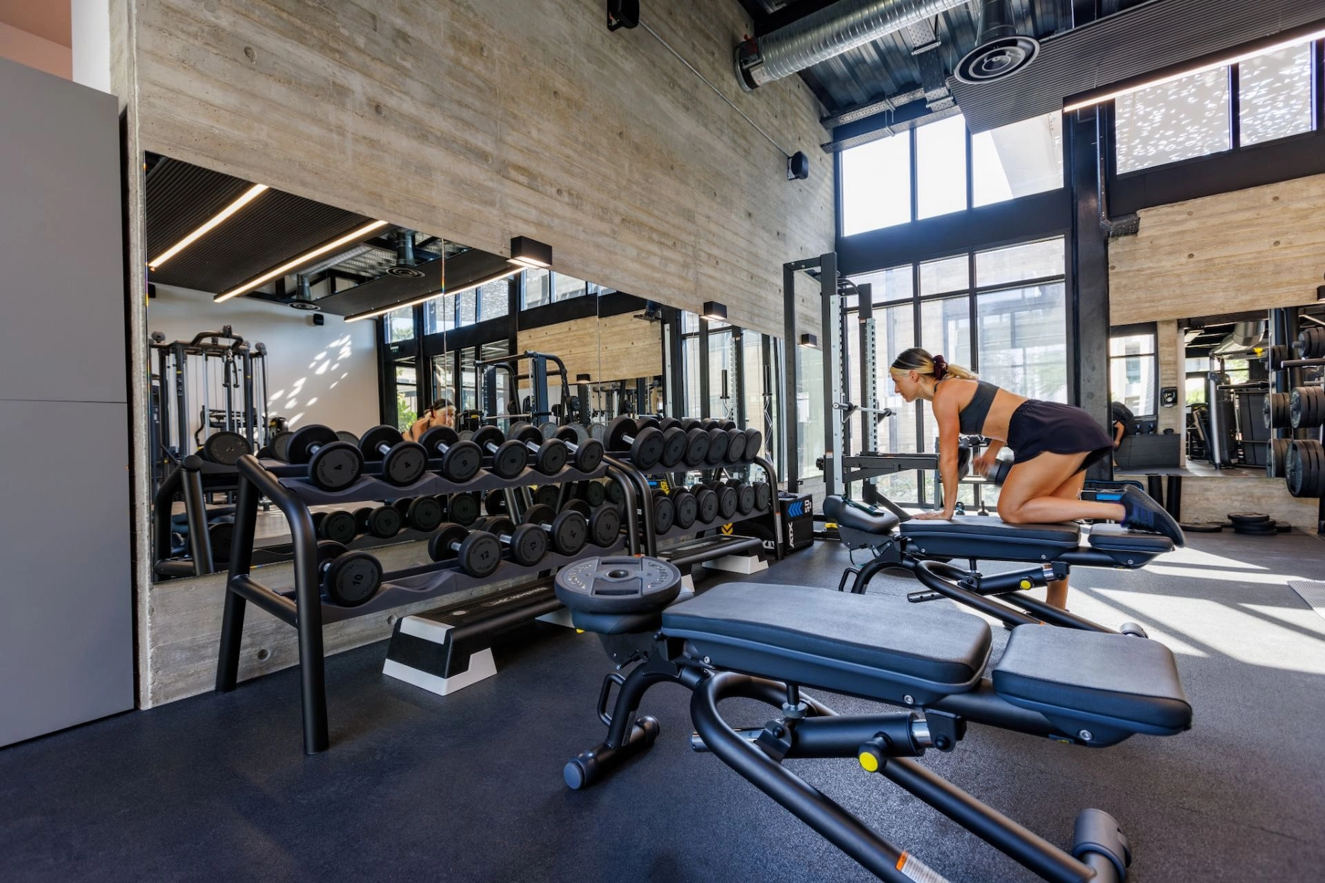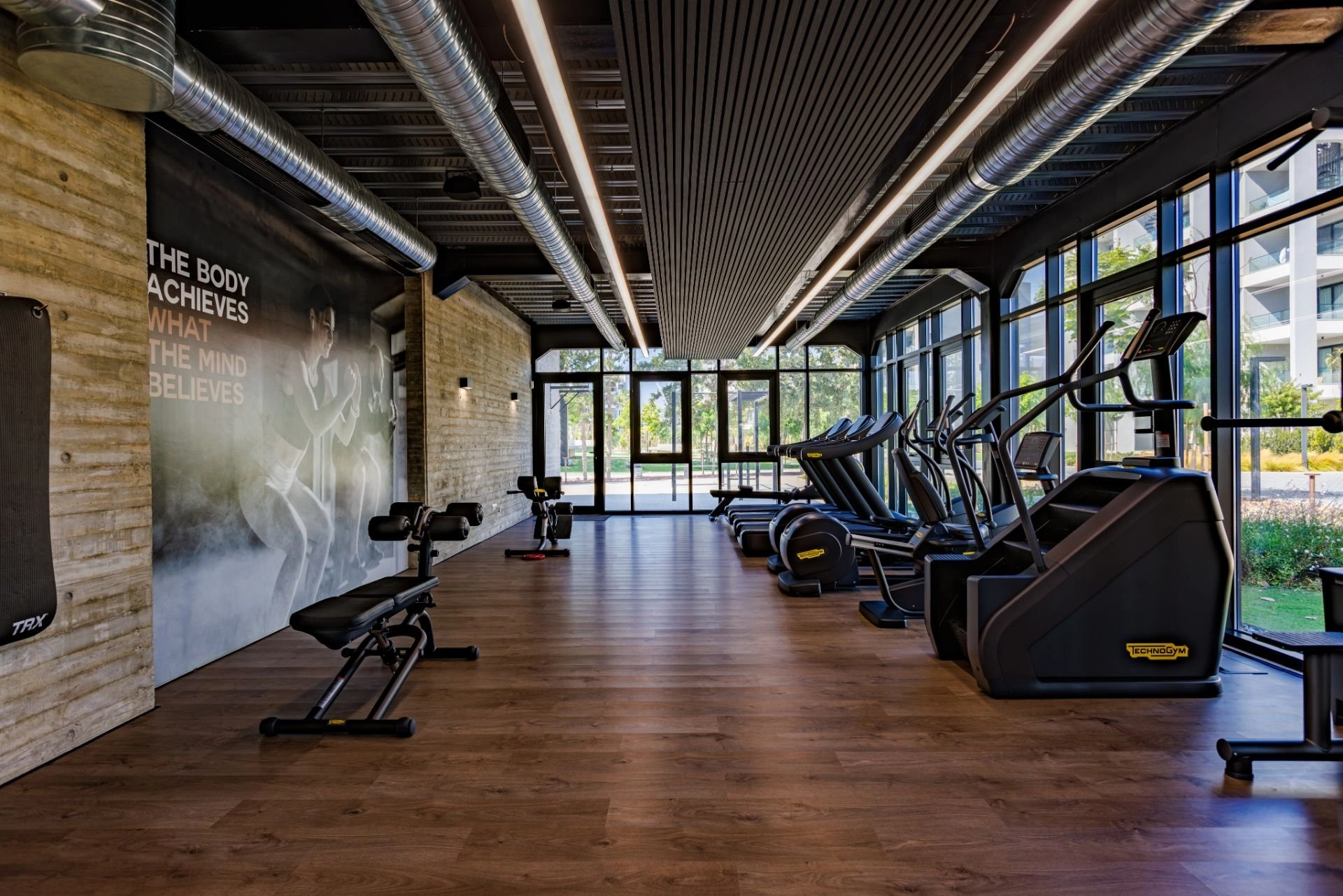 he extensive gym provides weight and cardio machines as well as spacious stretching areas, so you can perform a wide variety of workouts. Reach your workout goals through adapted and effective exercising programmed.