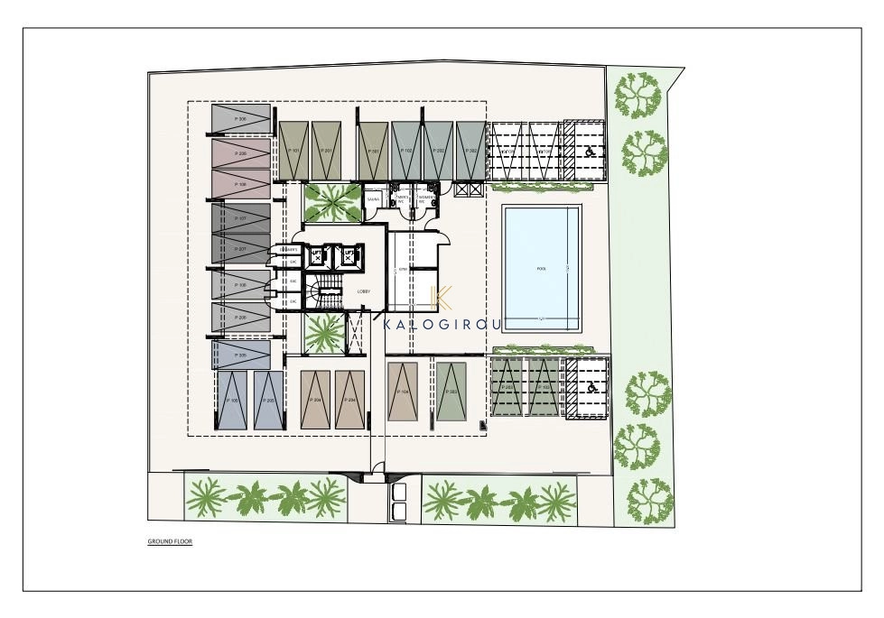 This modern residential project in Krasas area, boasts 20 apartments of one, two bedroom & studio. The modern design of the apartment building emphasizes the detail ensures the privacy of the residents.