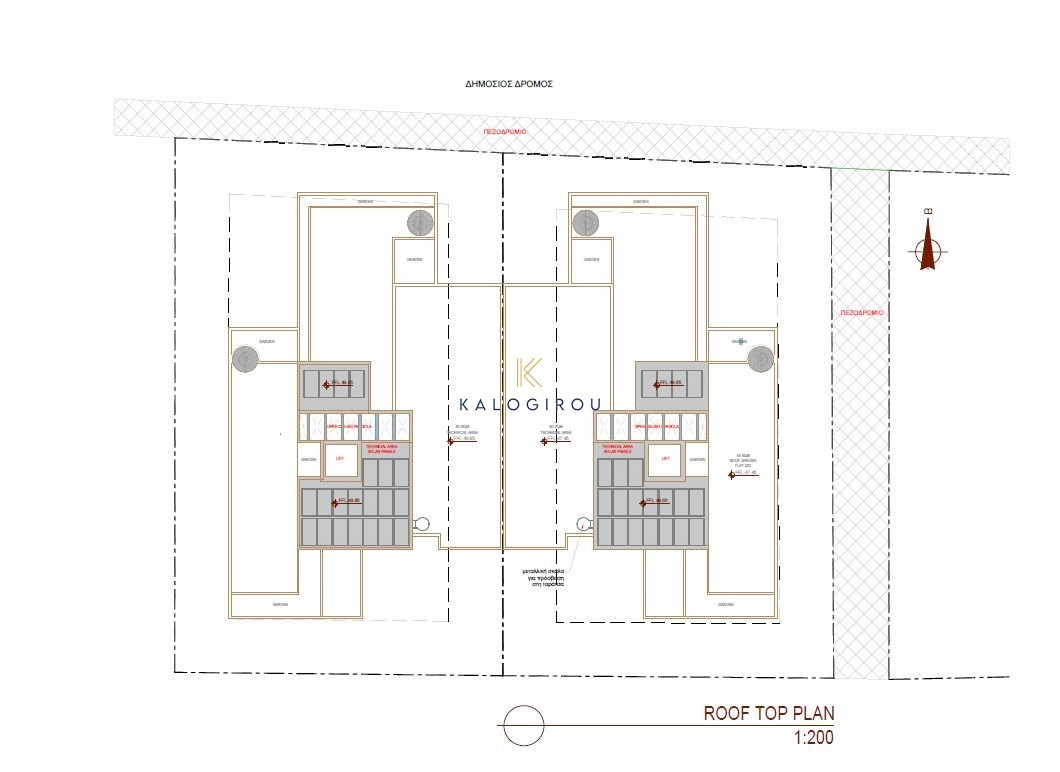 Penthouse apartment for sale in Vergina area, Larnaca Town. The property consists of an open plan kitchen, living and dining area, two bedrooms, from whom, the master bedroom consists an en suite bathroom with wc, while the property belongs an extra common shower with wc and a guest toilet. Also, the apartment has private covered parking area on the ground floor, and storage room. The apartment has internal covered area of 50 sq.m plus 13 sq.m of a covered veranda.