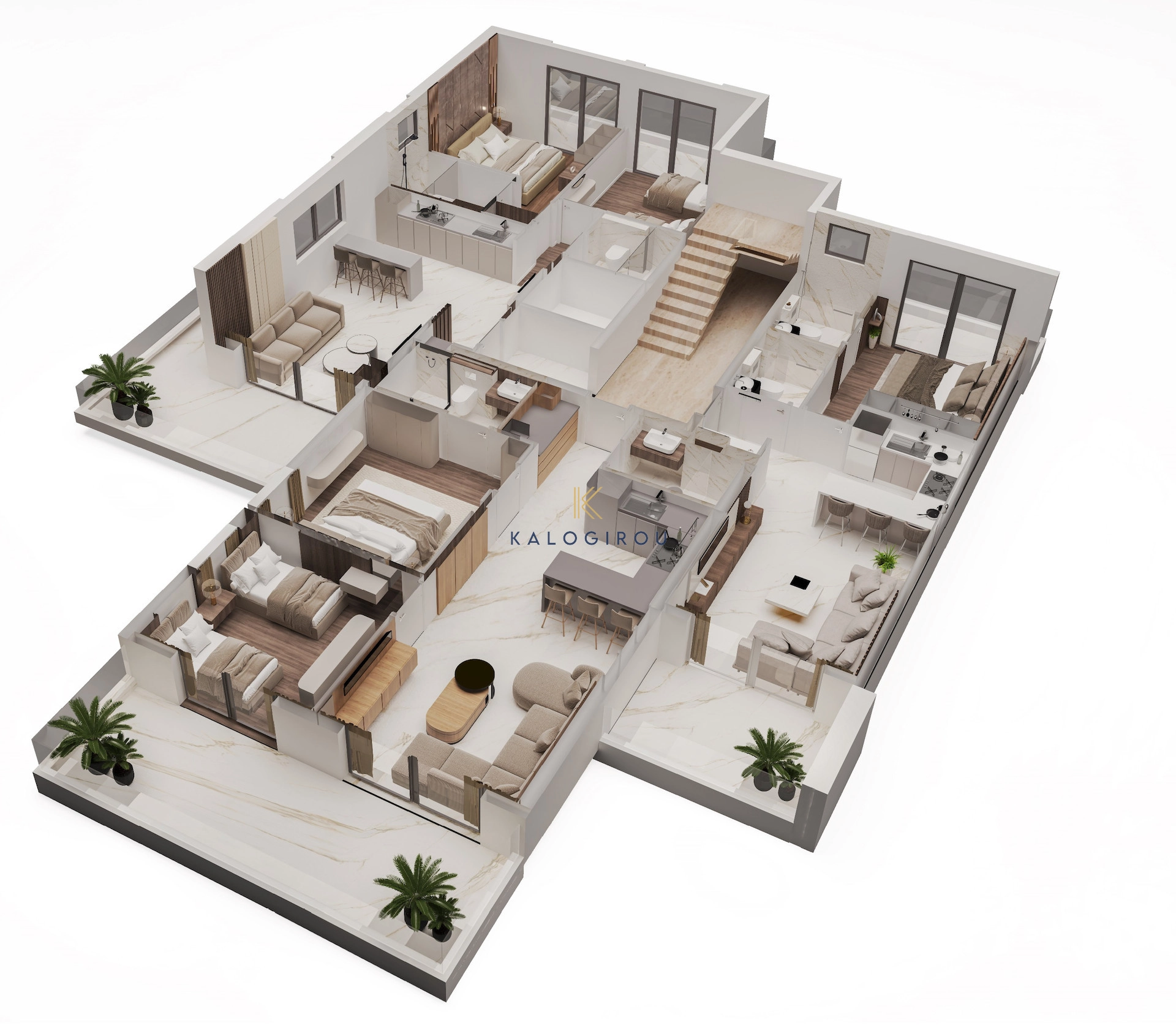Penthouse apartment for sale in Vergina area, Larnaca Town. The property consists of an open plan kitchen, living and dining area, two bedrooms, from whom, the master bedroom consists an en suite bathroom with wc, while the property belongs an extra common shower with wc and a guest toilet. Also, the apartment has private covered parking area on the ground floor, and storage room. The apartment has internal covered area of 50 sq.m plus 13 sq.m of a covered veranda.
