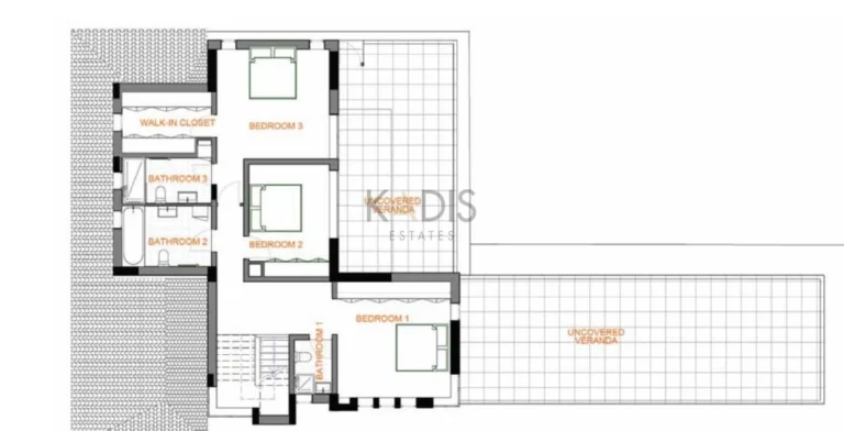The property for sale is a double strorey house in Dekeleia area, Larnaca. The house has internal covered area of 235sqm. On the ground floor there is a living room, open plan kitchen with island, dining area, one bedroom, an office/play room (second berdroom), a bathroom with shower & wc and a covered veranda of 24 sqm. Internal stairs lead to the first floor which consists of a master bedroom with en suite bathroom, veranda and two more bedrooms, both en suite shower. Externally, the house has large garden, double covered parking, storage and option for a swimming pool. It is worth mentioning that there is option for a sixth bedroom on the ground floor also en suite shower.