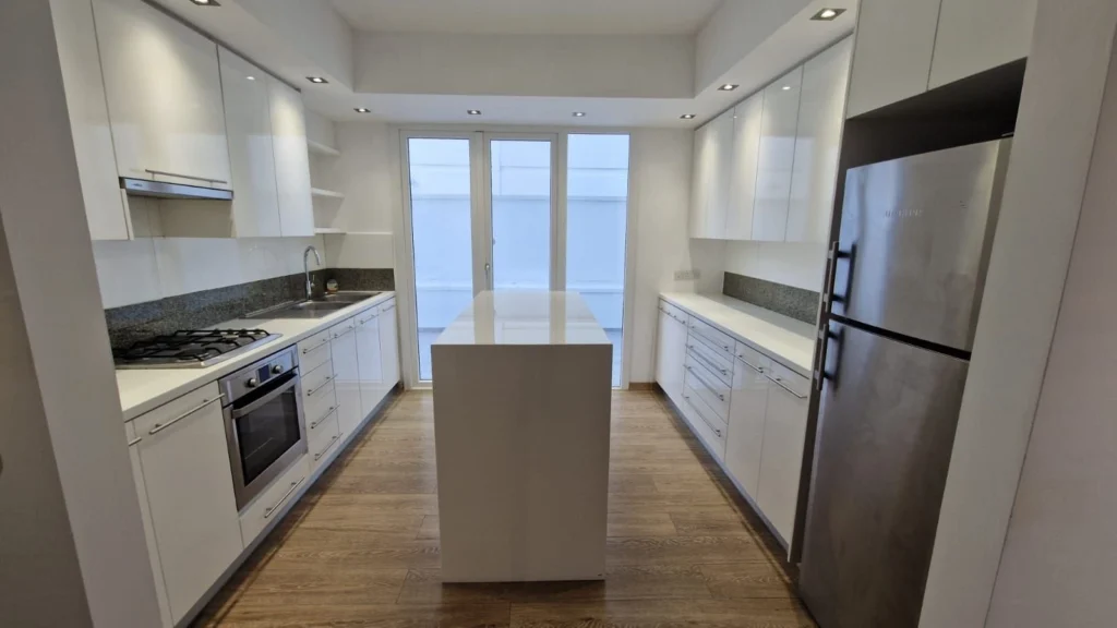This beautifully renovated Limassol apartment offers a spacious living room with a dedicated dining area, a modern kitchen featuring an island table, a guest toilet, a family bathroom, and a laundry space. The three generously sized bedrooms provide ample room for comfortable living, ideal for families or investors seeking high-yield rental potential.
