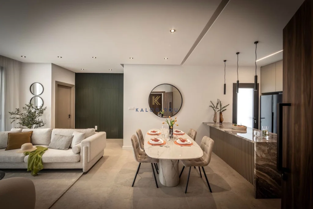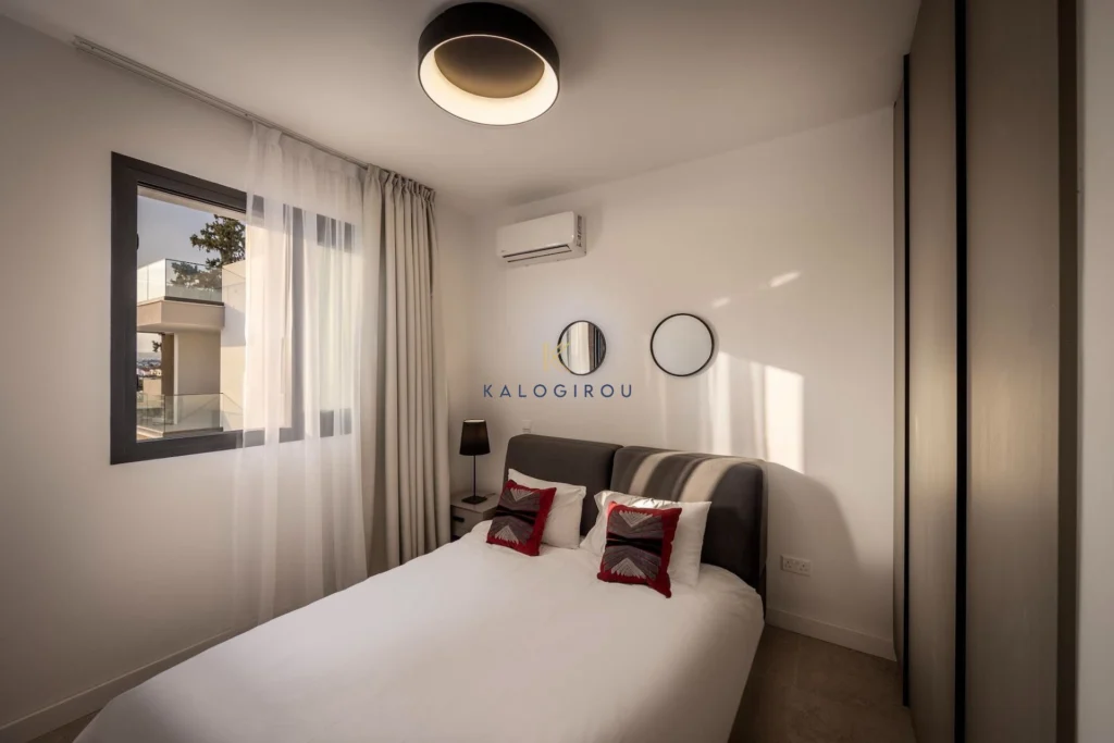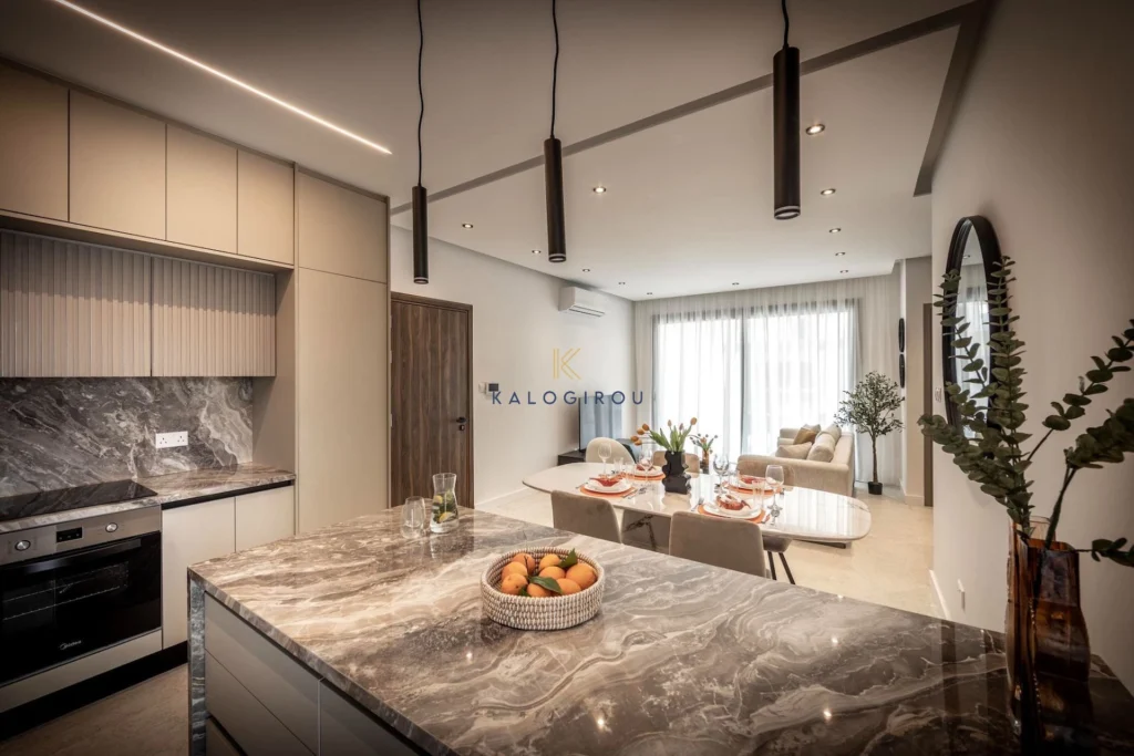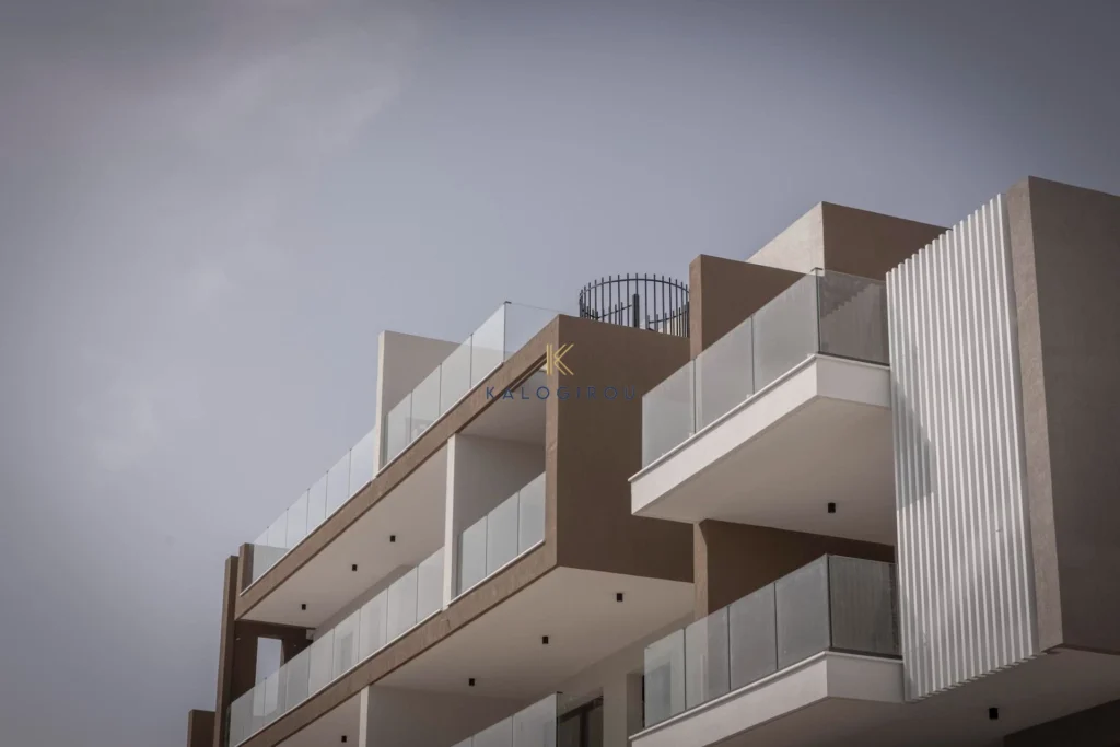 Apartment for Sale in Livadia area, Larnaca. This amazing apartment consists of an open plan kitchen with dining & living room area, a main bathroom (with walk in shower), laundry station, two bedrooms, one en-suite shower in the master bedroom, covered veranda (23 sqm) and a lovely roof garden of 50 sqm. The property has also access to an allocated covered parking and storage room on the ground floor. The complex offers to each residents’ luxury amenities such as gym, communal pool, jacuzzi, yoga and meditation area. The area of the property is characterized as residential and quiet.
