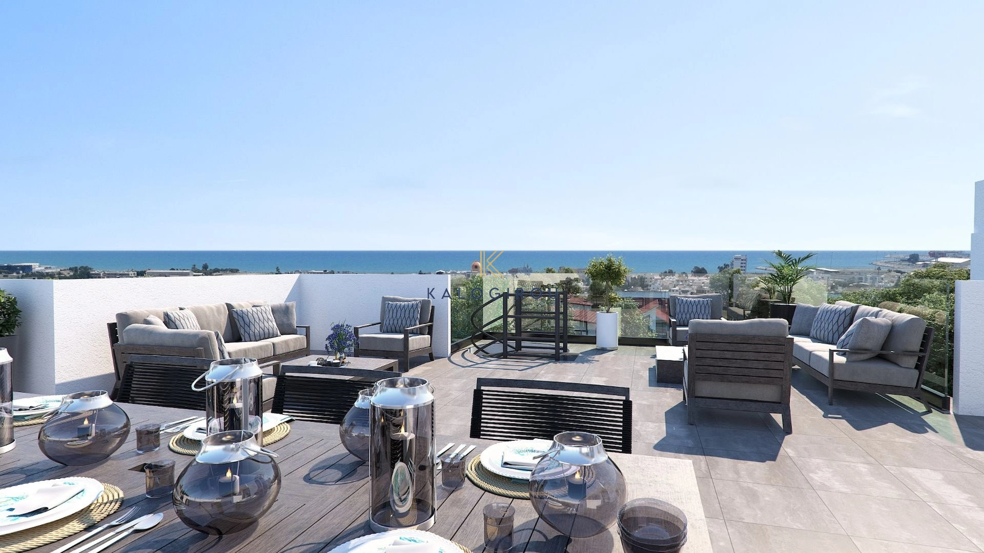 Brand New Apartment for Sale in Livadia area, Larnaca. The apartment is on the third floor with internal covered area of 59 sqm. It consists of a living room, dining area, kitchen in an open space, a main bathroom with shower and wc, one bedroom en-suite shower, 25 sqm covered balcony and a beautiful roof garden of 46 sqm. The residents have also access to a private parking space and storage room on the ground floor.