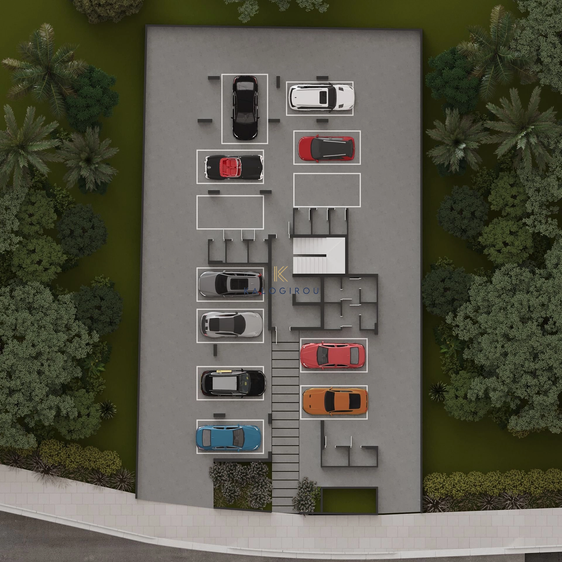 The flat is a part of a contemporary and stylish residential building. The building composed of 9 x two-bedroom apartments. There are 3 apartments per storey. All apartments have their own covered parking and storage room, while top floor apartments benefit from private roof gardens.