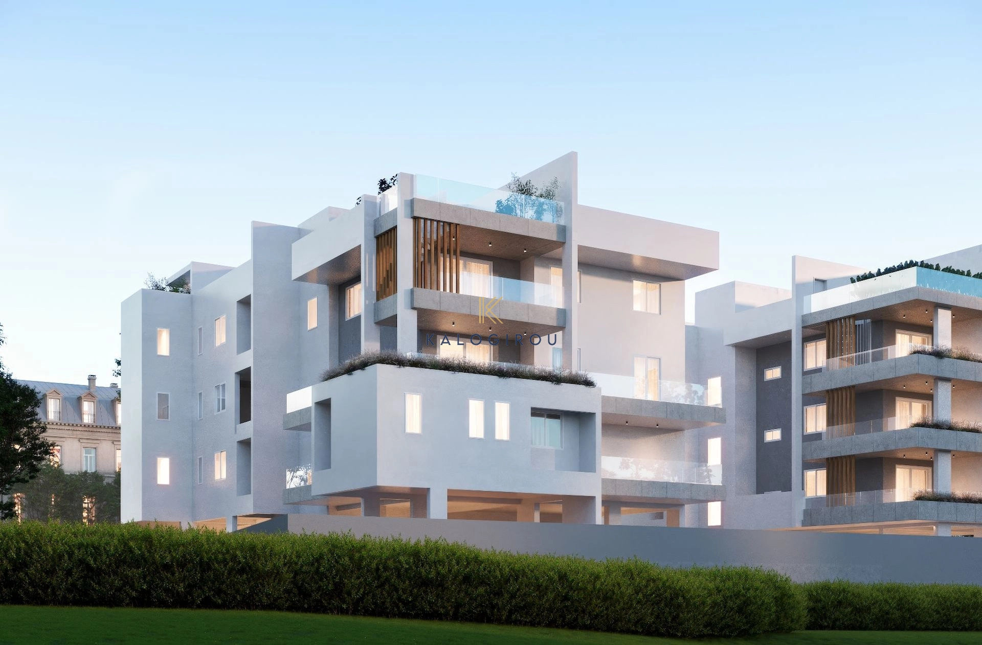 Apartment for sale in Aradippou area, Larnaca. The apartment consists of an open plan kitchen, living room, dining area, a main bathroom, two bedrooms, one of them is en suite with shower & wc, and a covered veranda. Moreover, the residents have exclusive right of use to a covered parking and storage room on the ground floor.