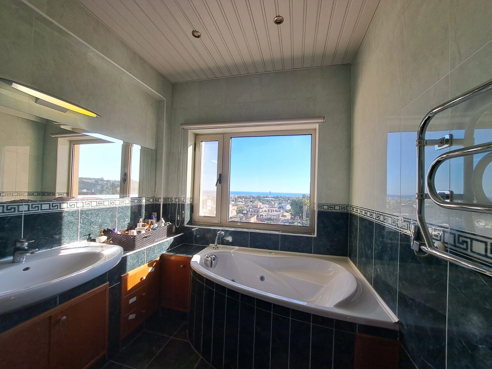 Reference ID: #SA35623Price details: €700,000This luxury 4 bedroom + separate studio, 5 Bathroom villa is located on the hill of Ag. Fyla, a 5 minute drive from the best private schools in Limassol, The Heritage, The Island and the newly built Pascal Plot. House size is 320 m² over three floors on elevated 355sq.m plot.The entrance level has a maids studio with kitchen and bathroom, large cinema, wine cellar, bathroom with shower, 2 separate garages. The ground floor – living room with sea views kitchen, dining, utility pantry room, storage, toilet.The first floor – sea view master bedroom with a walk-in closet and en suite, 3 bedrooms with large bathroom.The house boasts a large seaview veranda, swimming pool with slide, outside sauna, gym, BBQ area and a separate house with jacuzzi and bathroom. Title deeds available.
