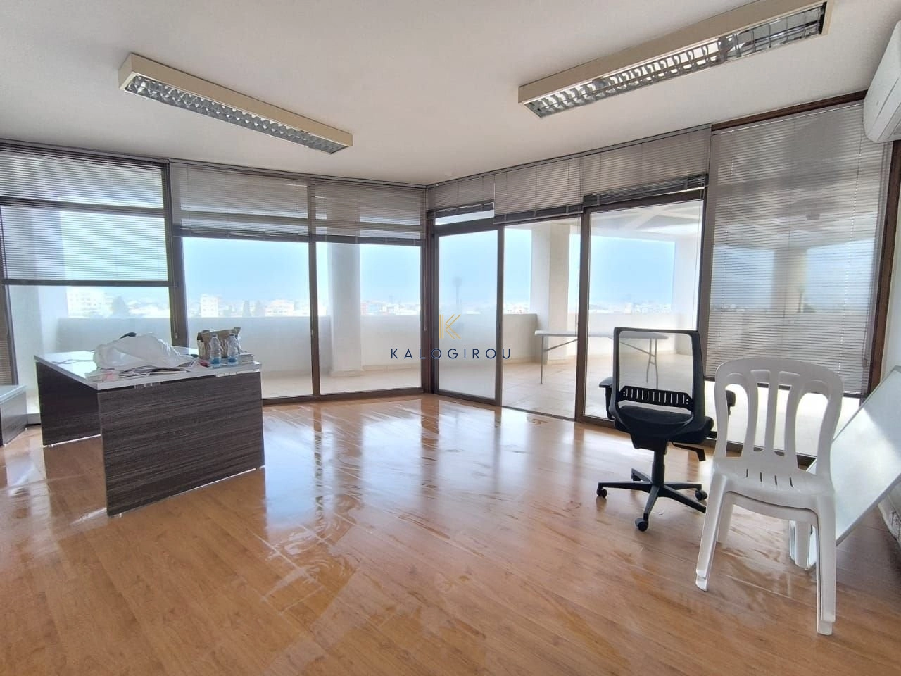 Office for sale in Larnaca, American Academy area. The property is on the top floor and consists of three large office spaces of approximately 100 sqm, and large covered verandas of approximately 120sqm. Is a whole floor office and is offers panoramic views to the city, to the municipality park and the sea.