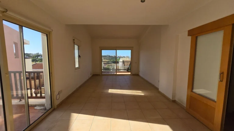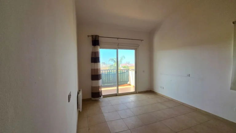 This cosy townhouse is located in Tombs of the Kings area, Paphos. Tombs of the Kings is a vibrant area in Paphos, rich in history and close to the UNESCO-listed archaeological site of ancient tombs. it offers a mix of cultural attractions, modern amenities, and beautiful coastal views, making it a popular destination for both residents and visitors. its central location ensures easy access to shops, restaurants, and the beach. This functional 2-bedroom townhouse offers a practical living space, ideal for those seeking a comfortable and straightforward home. The property is unfurnished, allowing new owners or tenants to personalize it to their taste. On the ground floor, an open-plan living, dining, and kitchen area provides a flexible layout for daily activities. Patio doors open to a private veranda, offering direct access to the communal pool—perfect for relaxing and socializing. A convenient guest toilet is also located on this level. Upstairs, the townhouse features two well-sized bedrooms with fitted wardrobes, ensuring ample storage. Both bedrooms share a centrally located bathroom. Additional amenities include air conditioning and private parking, ensuring comfort and practicality. Residents can enjoy the communal pool and the convenience of this low-maintenance property. ideal for those looking for a simple and affordable living option. Title Deeds Available!