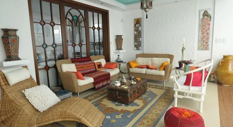 Modern comforts elevate daily living, including a smart-home system, central music system, CCTV, alarm system, underfloor heating, air-conditioning, solar power support, and refined artistic touches such as wall and floor mosaics.