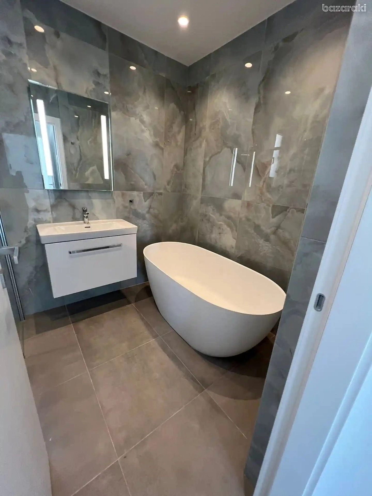 The master bedroom also has a free-standing bath and a separate shower, as well as a walk in wardrobe.