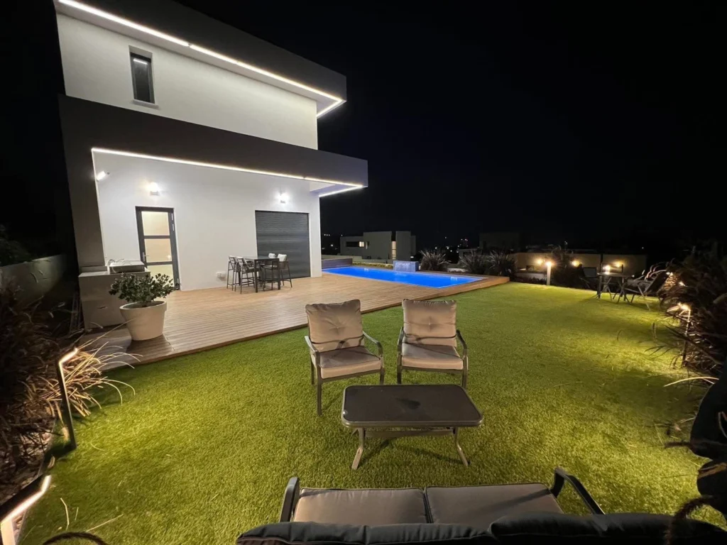 Additional features include a 7kw solar system, LED strip lighting all the way round the house, security entrance door, external HPL cladding by Marios Chari and security cameras and alarm system.