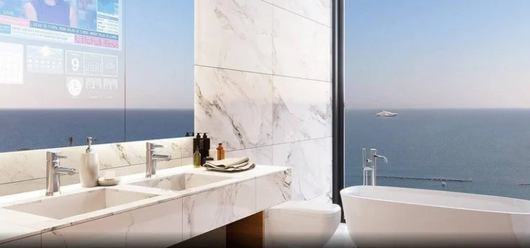 Accessible through private elevator landings, the residences are designed and finished to harmonise with the tower’s architecture and aesthetic. Impeccable quality is apparent throughout each residence in details like oversized core entry doors with designed door hardware and marble floors of the highest quality. Ceilings that are thoughtfully designed with hidden light features complement the character of these lavishly designed residences. The residences also feature energy-saving windows and floor-to-ceiling glass doors, which allow abundant natural light to flood the rooms. Concealed air-conditioning units and a full installation of under-floor heating provide the residences with thermal serenity and comfort. Kitchens are outfitted with European high quality cabinetry and islands with oblique edge details while fully integrated with kitchen appliances of recognised brands. Guest, master and secondary baths offer a dramatic mix of high design and tranquillity with marble floors and marble feature walls, complemented by world-renowned brands of sanitary ware.