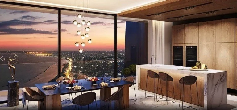 Accessible through private elevator landings, the residences are designed and finished to harmonise with the tower’s architecture and aesthetic. Impeccable quality is apparent throughout each residence in details like oversized core entry doors with designed door hardware and marble floors of the highest quality. Ceilings that are thoughtfully designed with hidden light features complement the character of these lavishly designed residences. The residences also feature energy-saving windows and floor-to-ceiling glass doors, which allow abundant natural light to flood the rooms. Concealed air-conditioning units and a full installation of under-floor heating provide the residences with thermal serenity and comfort. Kitchens are outfitted with European high quality cabinetry and islands with oblique edge details while fully integrated with kitchen appliances of recognised brands. Guest, master and secondary baths offer a dramatic mix of high design and tranquillity with marble floors and marble feature walls, complemented by world-renowned brands of sanitary ware.