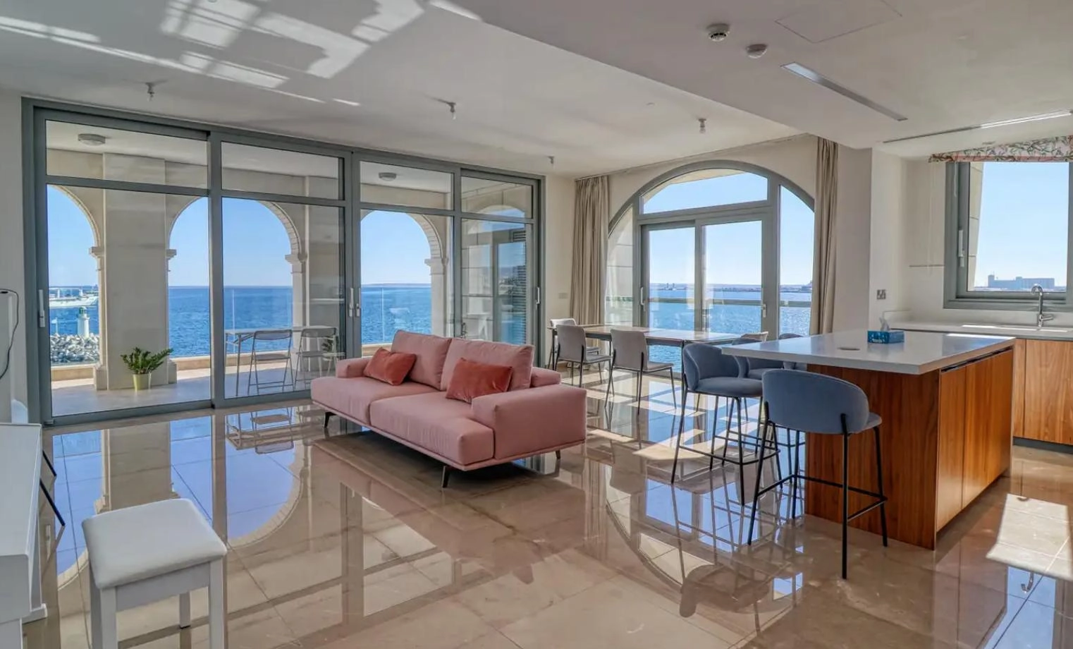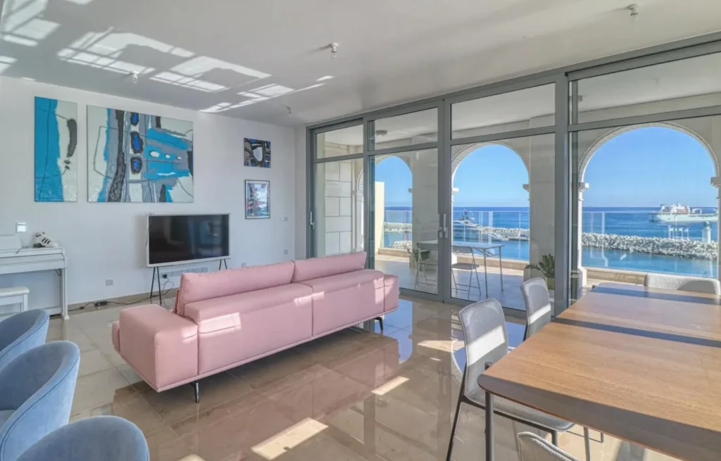 For sale 2-bedroom apartment by the sea, Limassol Marina. They have a spacious living room, kitchen, two bedrooms and two bathrooms. Fully furnished and equipped with household appliances, air conditioning, Italian plumbing, underfloor heating and VRV air conditioning. A swimming pool with recreation areas and a playground is available. 24-hour security, Parking. The property is located just a few meters from a private sandy beach and offers stunning views of the harbor, yachts and the city.