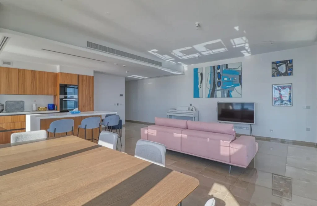 For sale 2-bedroom apartment by the sea, Limassol Marina. They have a spacious living room, kitchen, two bedrooms and two bathrooms. Fully furnished and equipped with household appliances, air conditioning, Italian plumbing, underfloor heating and VRV air conditioning. A swimming pool with recreation areas and a playground is available. 24-hour security, Parking. The property is located just a few meters from a private sandy beach and offers stunning views of the harbor, yachts and the city.