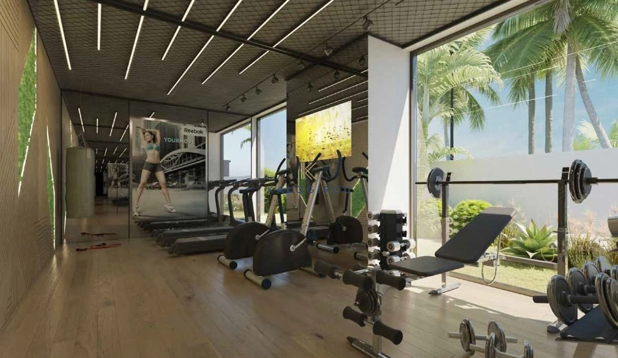 The outstanding property consists of 2 bedrooms, an open plan kitchen and dining room and one living room. The apartment has one main bathroom and one guest room. The property has modern, minimalistic and avant-gardist architecture, while it has also access to the communal swimming pool and the gym of the asset.