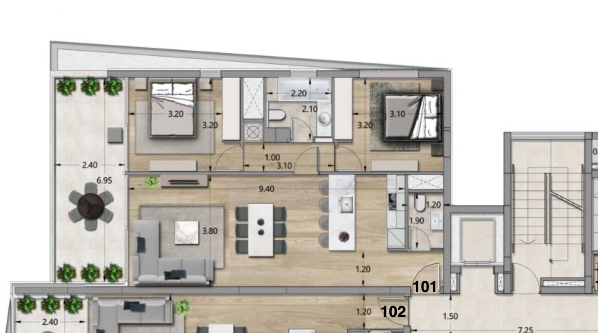 This 2 bedroom apartment is located on the second floor, apartment #202, in a modern building consisting of 4 floors with a total of 16 spacious apartments. It is situated in an upcoming residential area near the upcoming casino City of Dreams Mediterranean, The Mall of Limassol, the cosmopolitan Marina area, and the clean beaches of Ladies Mile. The apartment is also just a 10-minute walk to a big supermarket. Delivery is scheduled for November 2023.