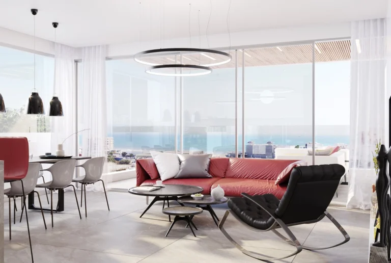 The three-bedroom apartment offers generous interiors and refined finishes in one of Larnaca’s most desirable neighborhoods. Just steps from Mackenzie Beach, it is perfectly suited for families or those seeking a larger coastal home.