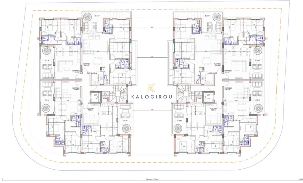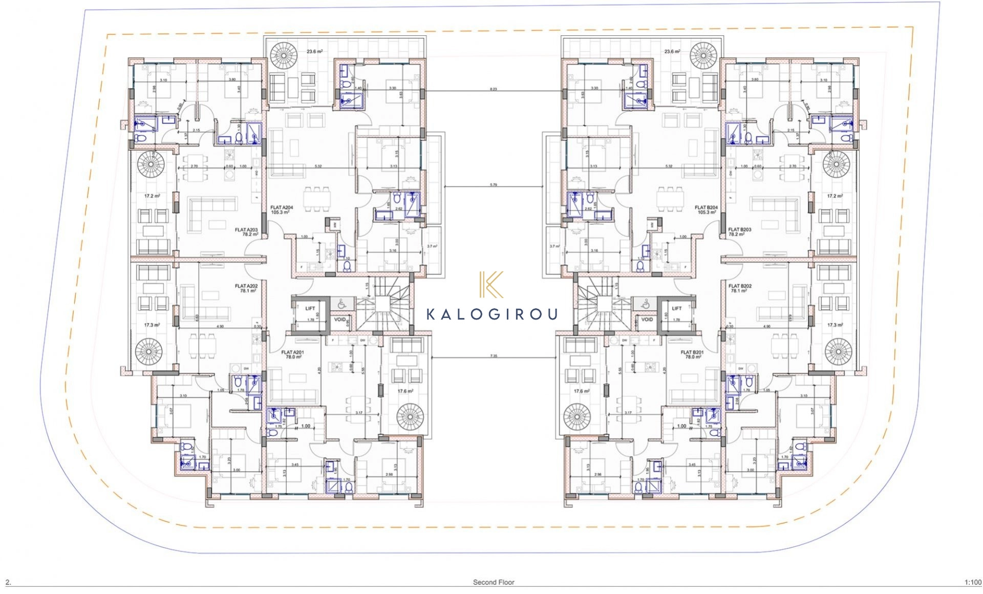 Apartment, for sale in Livadia area, in Larnaca Town. The apartment has internal covered area of 78.1 sq.m and consists of a living room, an open plan kitchen with dining area, two bedrooms,1 en-suite shower with wc, 1 main shower with wc and 17.5 sq. m. of covered veranda.The roof garden is 50 sq. m, consists of sitting area, wc and provision for BBQ area.