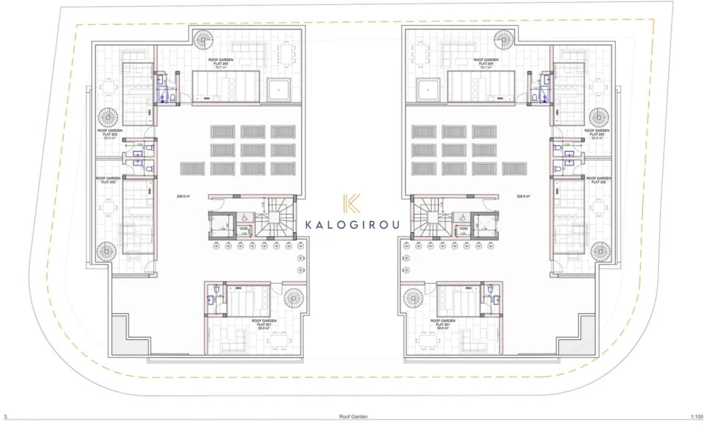 Apartment, for sale in Livadia area, in Larnaca Town. The apartment has internal covered area of 78.1 sq.m and consists of a living room, an open plan kitchen with dining area, two bedrooms,1 en-suite shower with wc, 1 main shower with wc and 17.5 sq. m. of covered veranda.The roof garden is 50 sq. m, consists of sitting area, wc and provision for BBQ area.