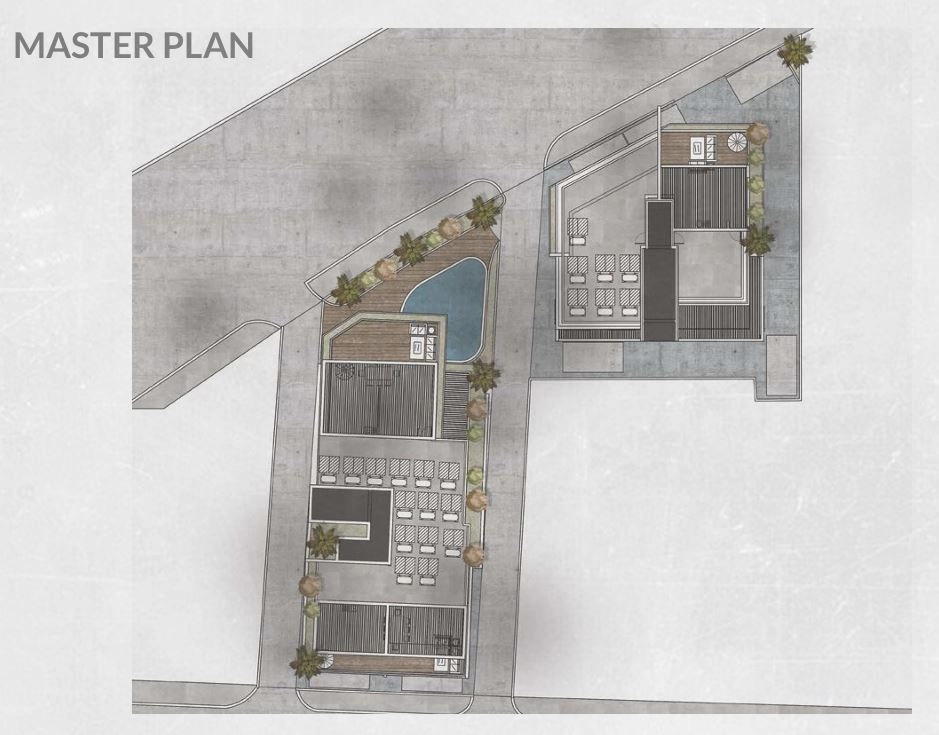 Building B: 4 floors. 4 apartments per floor + 2 penthouses, each with a private jacuzzi. 6 one-bedroom + living room apartments. 6 two-bedroom + living room apartments.