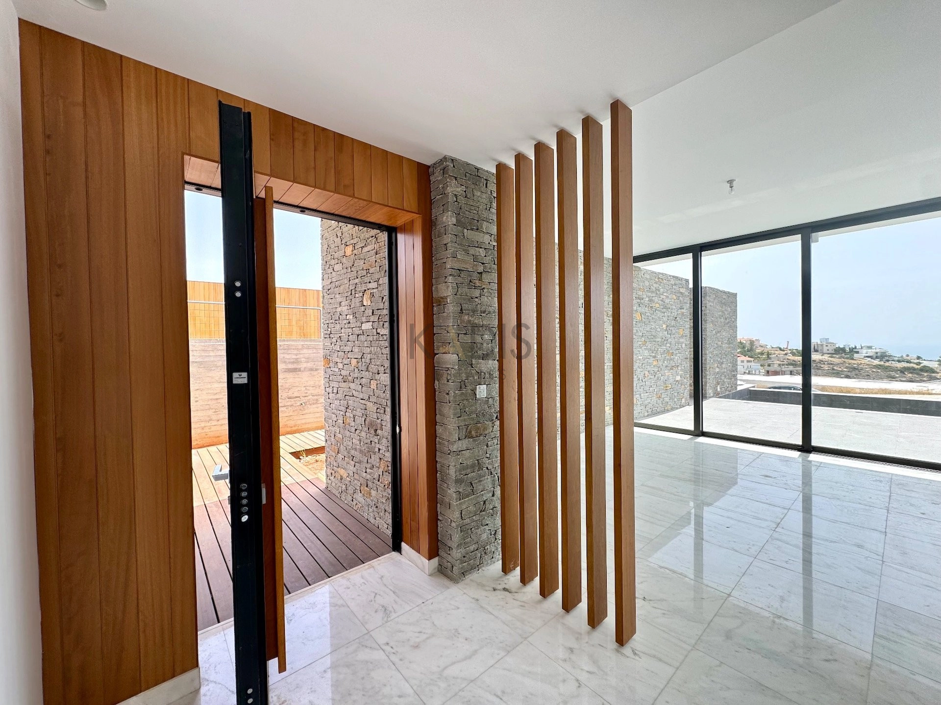 A refined, Mediterranean-inspired design that combines modern architecture with natural materials like wood, marble, and stone, blending elegance with coastal charm
