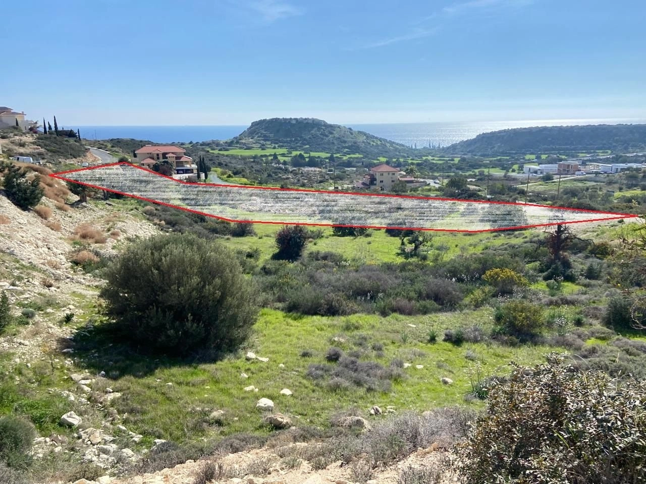 The plot borders another plot on its northern side, which has a building density of 30% on one half and 50% on the other half. Therefore, it is anticipated that, with the upcoming zone changes, its building zone will be modified to exceed 30%. The plot has a registered road, is mostly level, and due to its morphology, it will always offer unobstructed sea views because of its elevation relative to neighboring plots.
