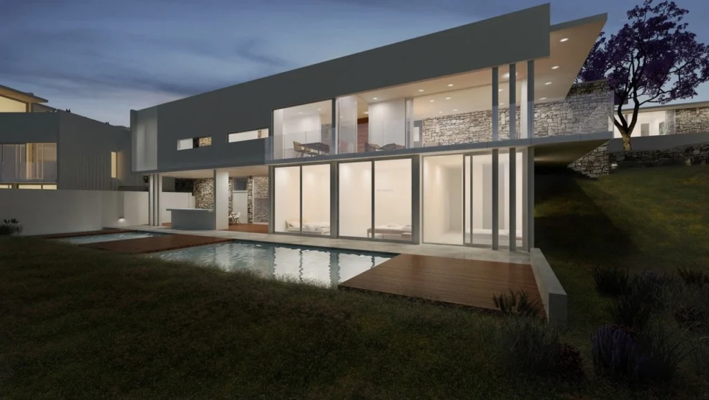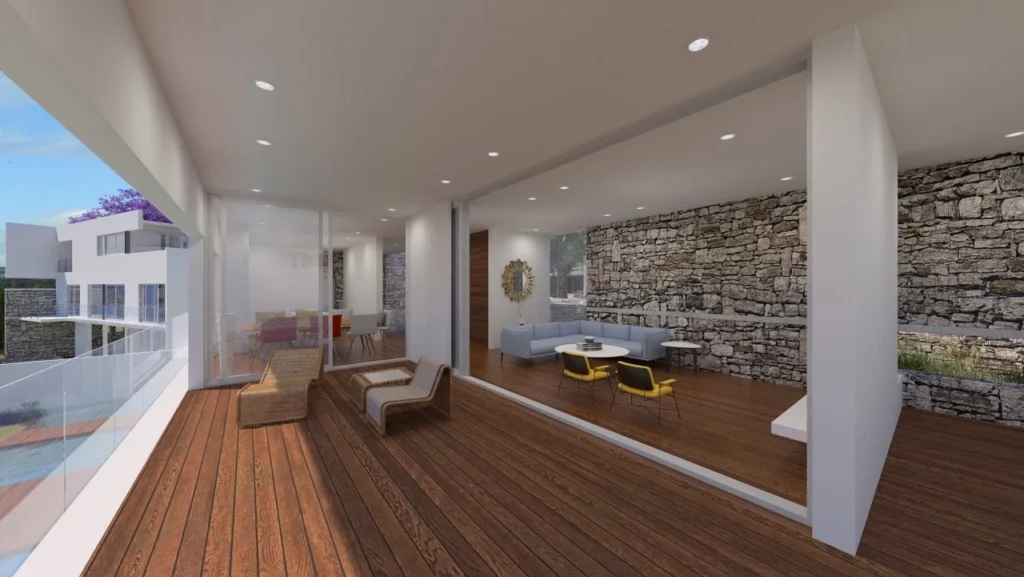 Despite the modern architectural design, there is a direct reference to the regional and Mediterranean tradition, not only through the use of traditional materials (stone, wood, etc.), but also through the organization of the interior spaces, making use of the semi open- air spaces and the outdoor spaces as vital parts of the residence.