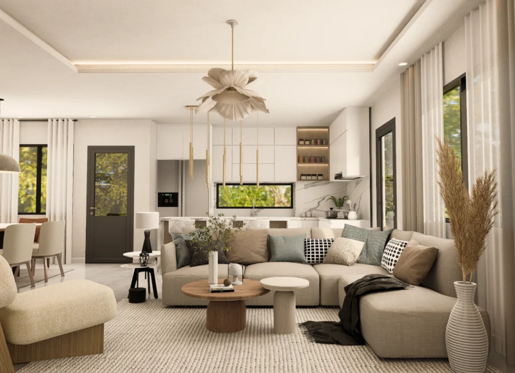 Generous in size, the kitchen is crafted with premium finishes and ample storage. Its central position allows easy interaction with both the dining and living areas, making it a true hub of the home.