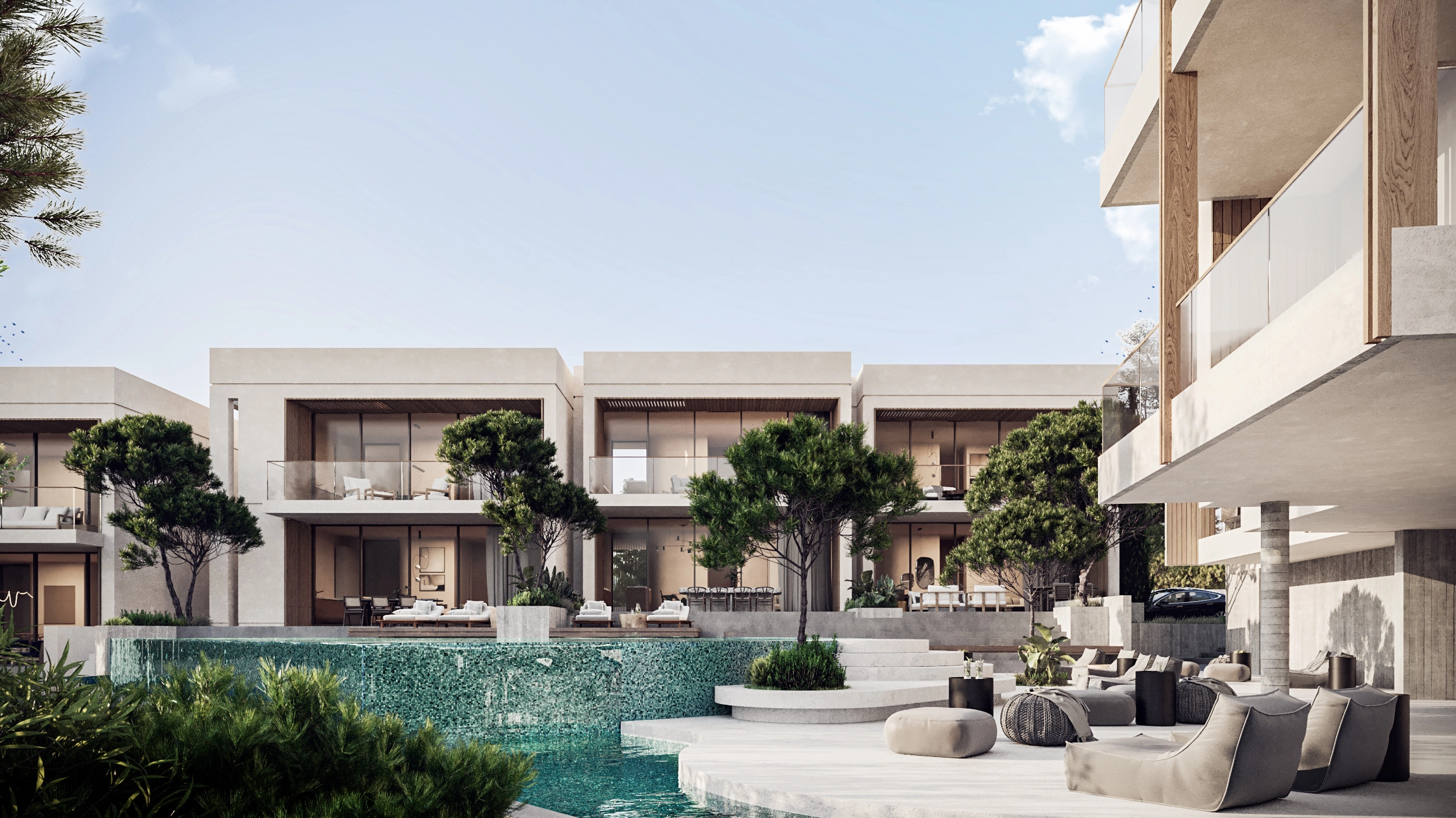 This particular 2 bedroom apartment, located on the first floor in Block A and B of the Kapparis project, offers a unique living experience with magnificent sea views of the Famagusta coast. It is situated in close proximity to the apartment’s central round-shaped swimming pool, a distinctive feature of this property, and is surrounded by well-developed landscaped areas that create a pleasant and private environment. Designed with a blend of nostalgic and cutting-edge elements, this apartment provides a lifestyle combining prosperity, leisure, and a holiday atmosphere, ideal for discerning families and individuals seeking privacy and exclusivity.