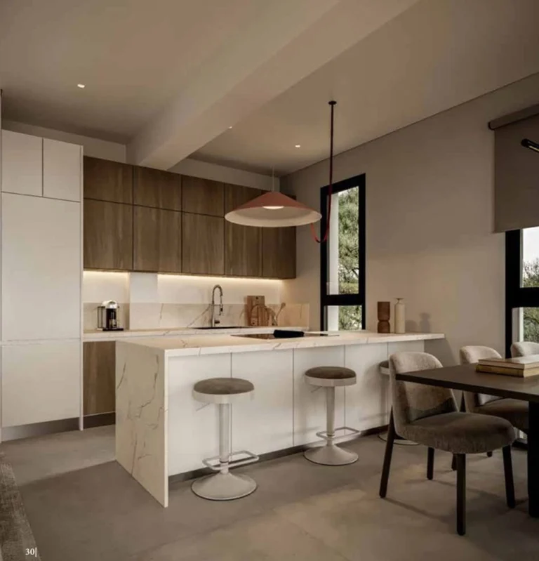 Top Floor Apartment for sale in Livadia area, in Larnaca. The apartment consists of a living, dining, kitchen area as an open space, a main bathroom with shower, three bedrooms, master bedroom is en suite with shower, covered balcony and roof garden. The roof garden comprised of the veranda, a shower, 1 wc and storage room. Moreover, the residents have exclusive right of use to a covered parking on the ground level.